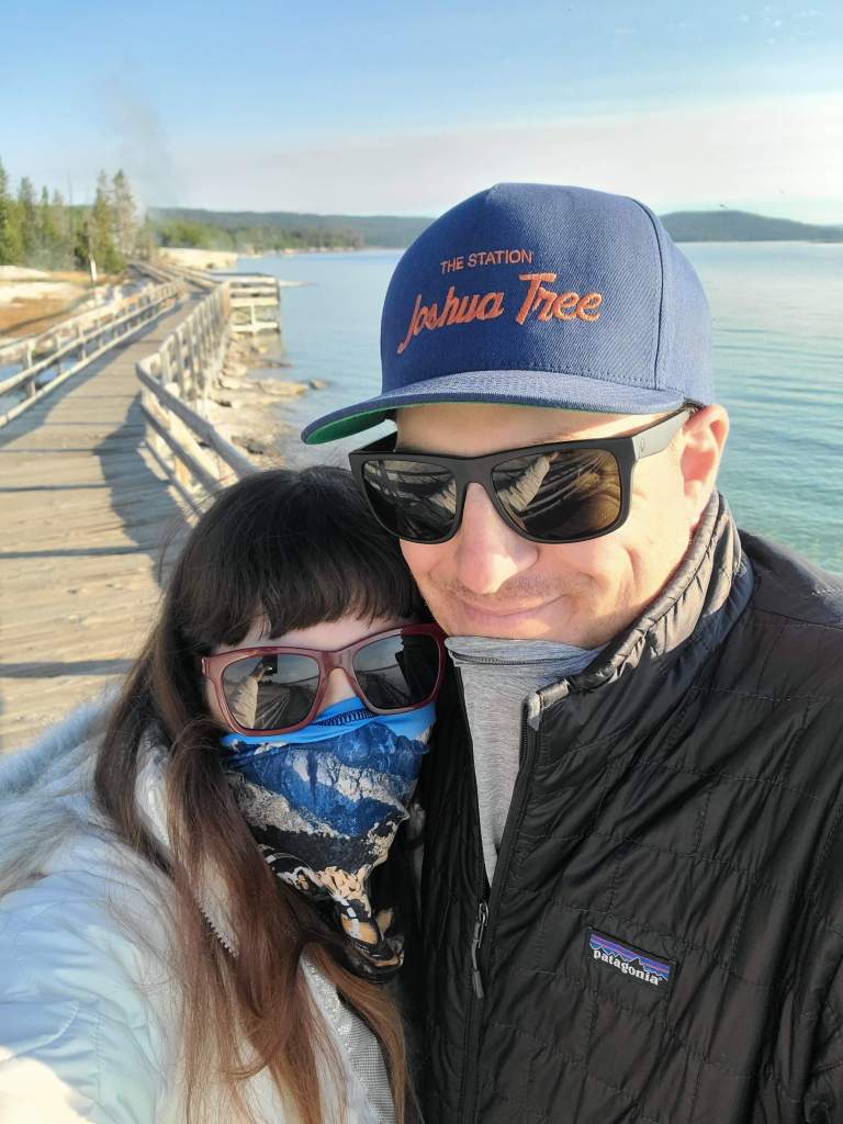 We got lucky leaving early, because there was a ton of road construction happening on Grand Loop between the Old Faithful and West Thumb areas. But because of our early departure, we didn’t get stuck in any of the promised daily traffic. We stopped at one of the many Continental Divide markers to get some pictures and just admire the magnitude of it all before heading to West Thumb to hike the West Thumb Geyser Basin Trail.